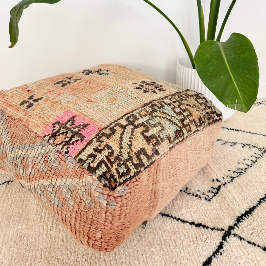 This gorgeous floor cushion has been handmade from a vintage wool rug from Morocco.