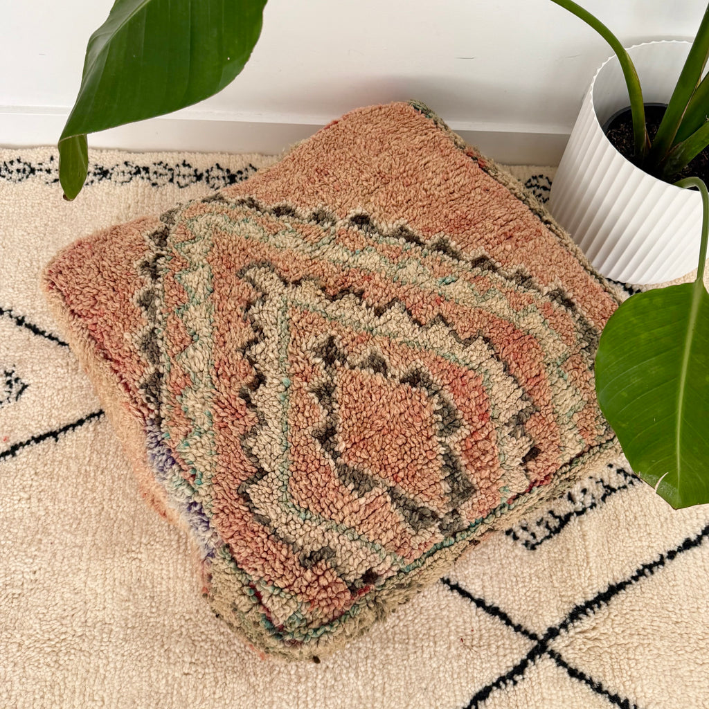 This gorgeous floor cushion has been handmade from a vintage wool rug from Morocco.