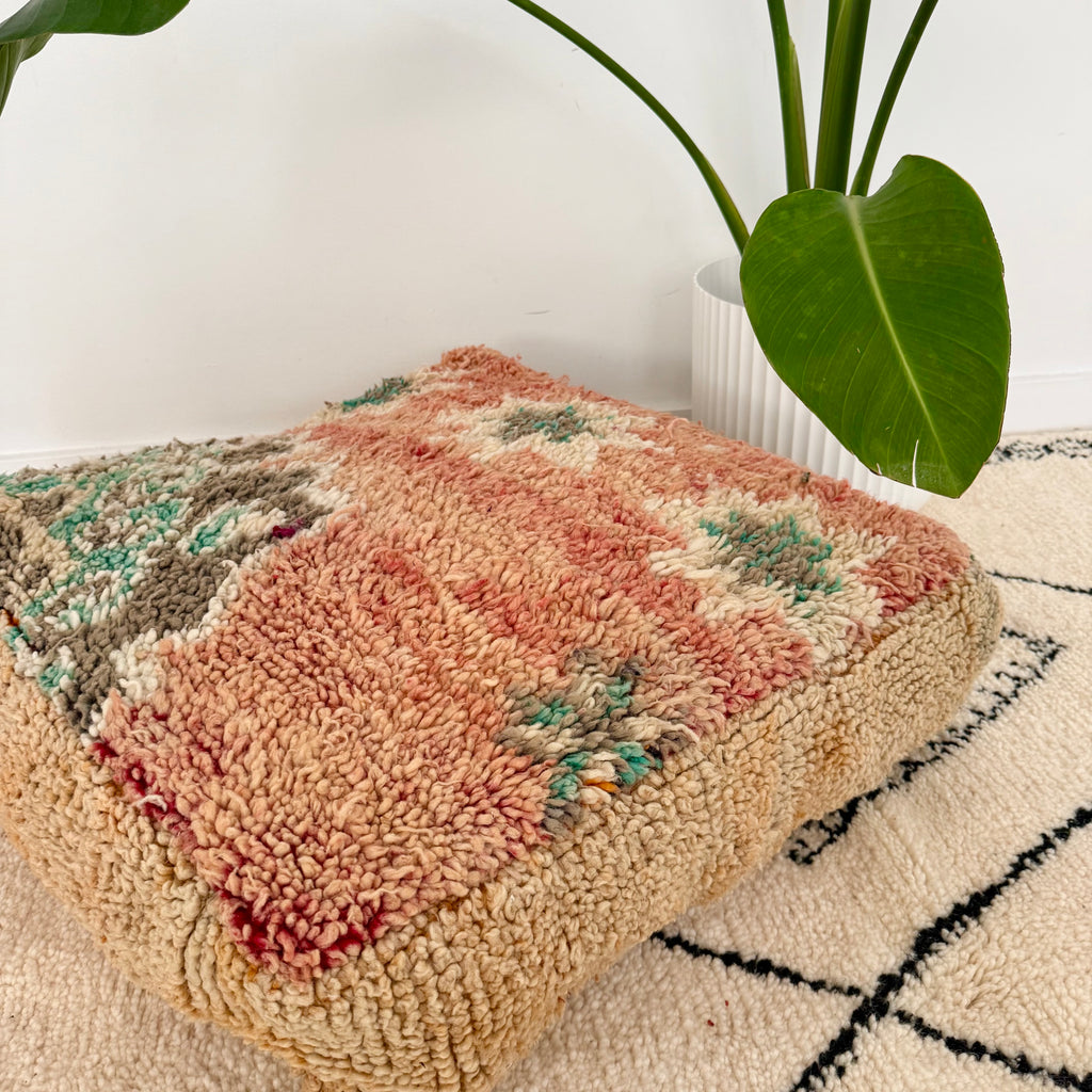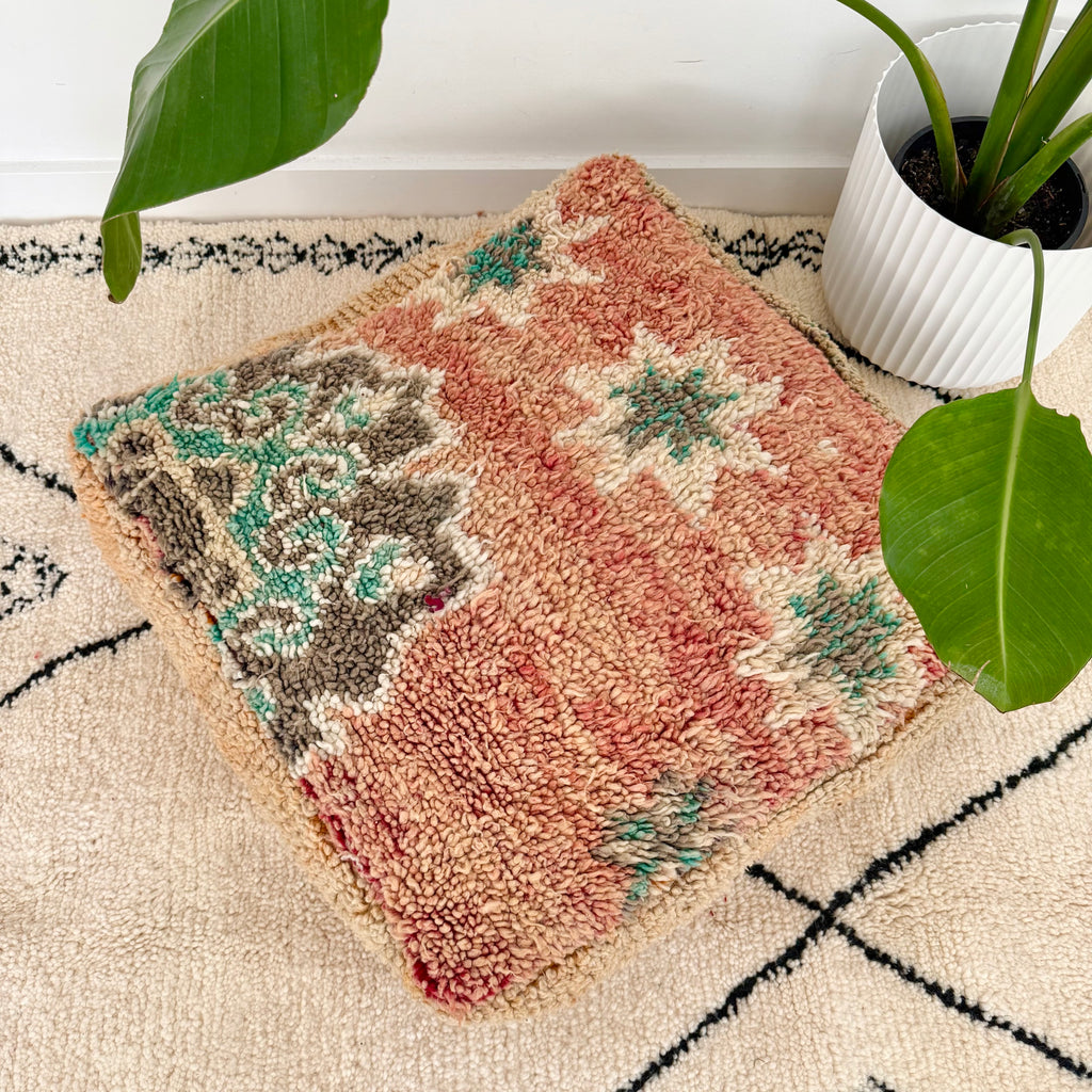 This gorgeous floor cushion has been handmade from a vintage wool rug from Morocco.