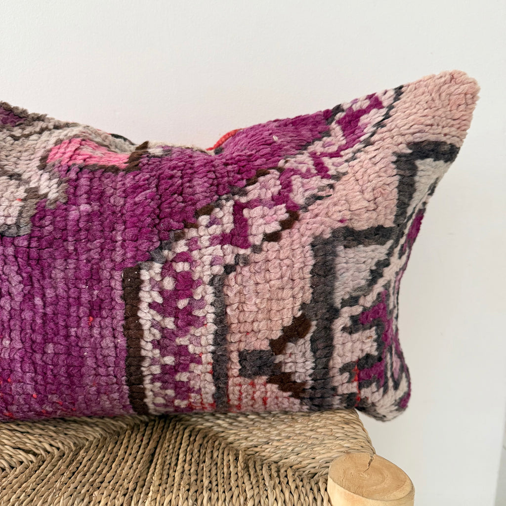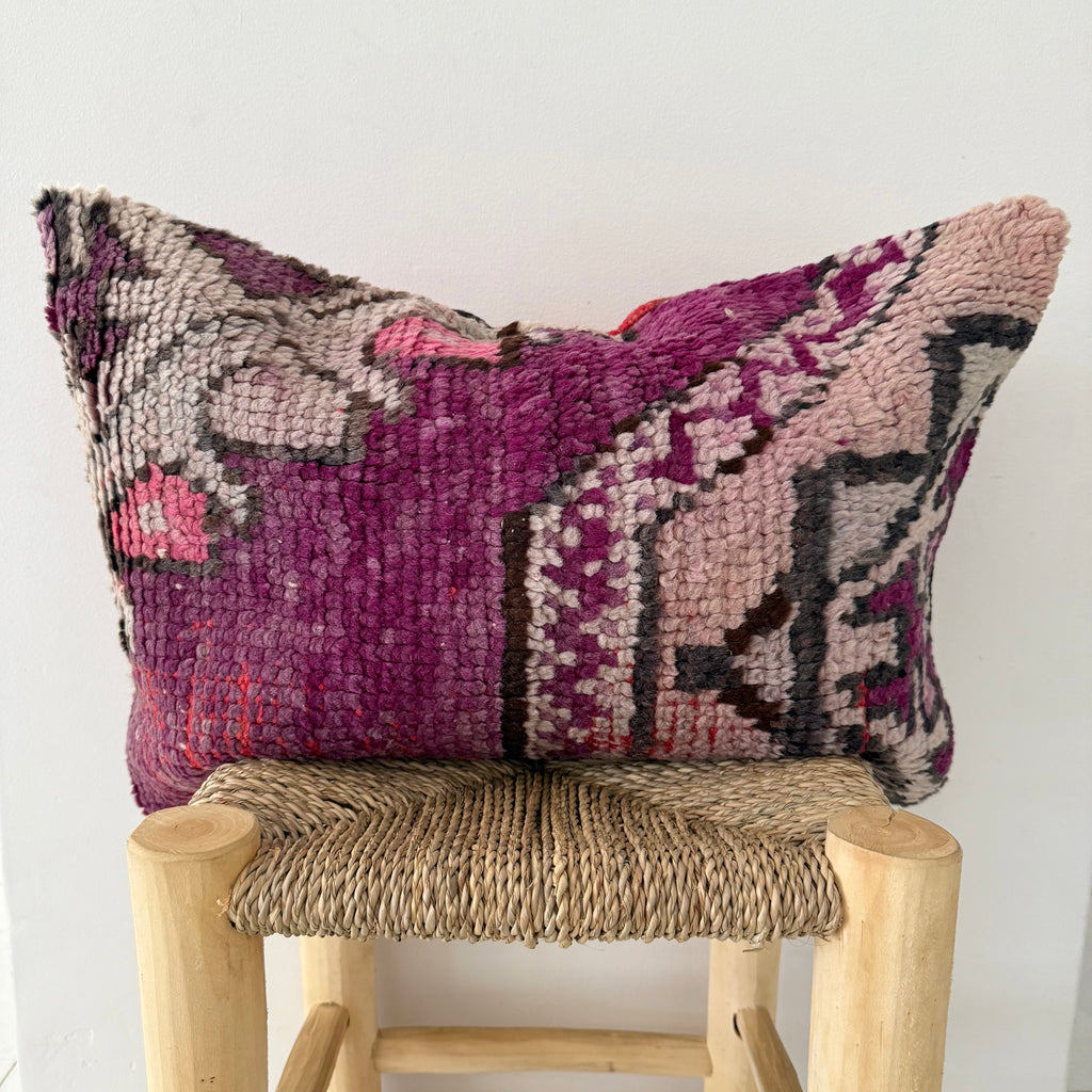 These lumber shape pillow covers are made from vintage Moroccan wool rugs.